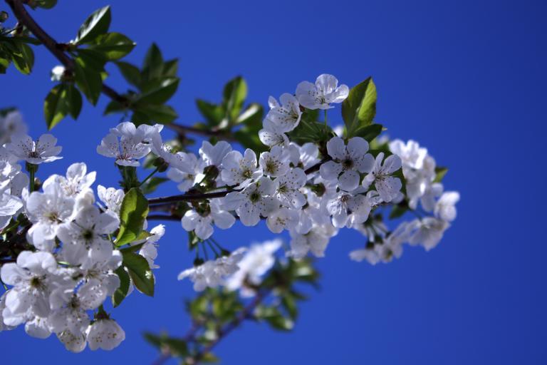Keywords: cherry white flowers blue background white blue cherry blossom flower nature