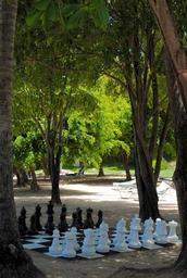 Keywords: chess game beach pastime leisure trees green play chess pieces outdoors resort relax grenada caribbean tropical west indies luxury vacation paradise giant chess pieces calabash beach summer