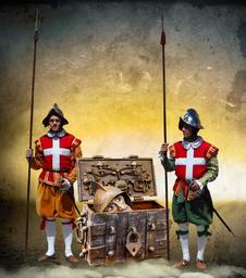 Keywords: chest box treasure chest middle ages head guard soldiers spear guarded valuable protection helm bolt castle wood rustic fitting historically uniform cross image editing