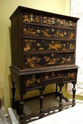 | Keywords: Chest on chest, view 1, unidentified maker, Dutch or Danish, c. 1700, spruce, alder, pear wood, white oak, with paint, gesso, gilding, and brass hardware - Albany Institute of History and Art - DSC07974.JPG en Exhibit in the Albany Institute of History and Art Albany New York USA This artwork is in the public domain because the artist died more than 70 years ago Photography was permitted in the museum without restriction 2013-06-13 10 35 42 own Daderot cc-zero Uploaded with UploadWizard Furniture in the Albany Institute of History and Art |
