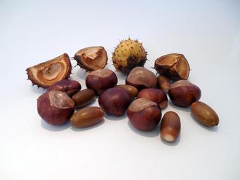Keywords: chestnut acorns autumn shiny brown decoration forest tree fruits