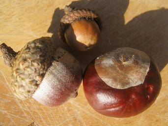 Keywords: chestnut acorns brown shiny autumn decoration