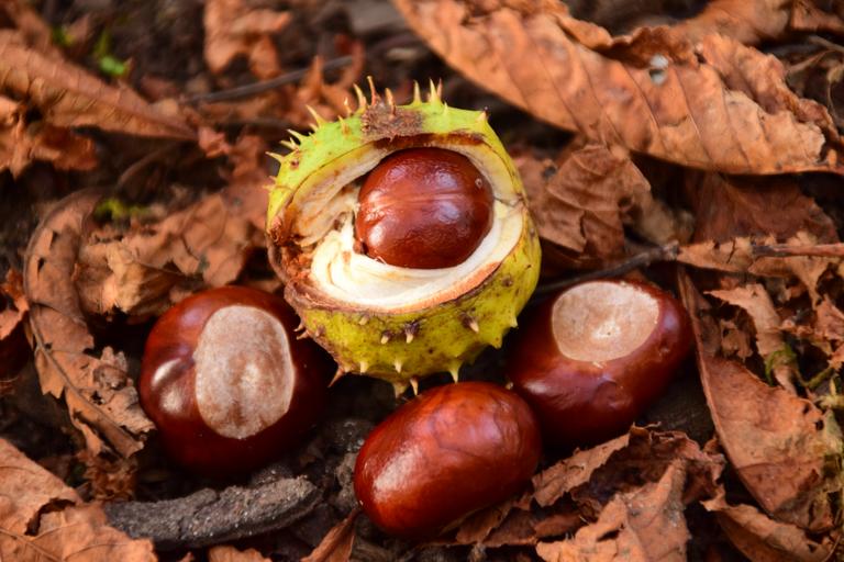 Keywords: chestnut autumn prickly forest floor chestnut leaves spur brown about buckeye