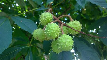 Keywords: chestnut green tree plant chestnut tree beer garden leaves branch chestnut leaves fresh green nature summer spur tree fruit thorns pointed