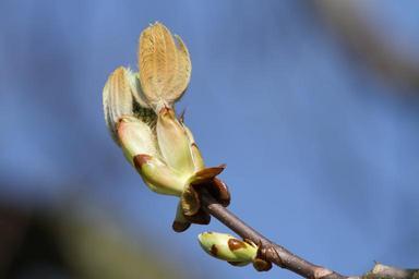 Keywords: chestnut tree chestnut bud ornamental tree bloom nature garden spring plant leaf road tree close sky blue aesculus hippocastanum