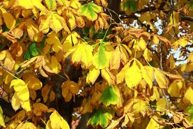 Keywords: chestnut tree leaves yellow park tree close-up outdoors autumn