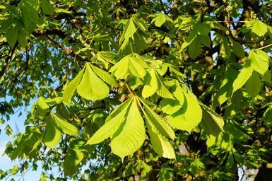 Keywords: chestnut tree ordinary rosskastanie branches leaves shades of green all at the beginning canopy