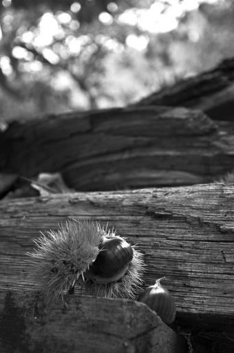 Keywords: chestnut wood black white chestnuts hedgehog autumn light shadow mood nature autumn fruit october deciduous tree spur