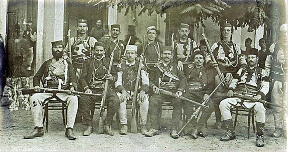 | Keywords: Chetniks in Bitola, 1908.jpg Petko Ilić Boško Virjanac Dane Stojanović Koce Drenovski Čuma Undetermined Sitting Mihailo Josifović Jovan Dolgač Vasilije Trbić Gligor Sokolović Stevan Nedić-Ćela Jovan Babunski sr С пске војводе у Битољу 1908 године Седе с лева на десно 1 ихаило Јосифовић по ечки 2 Јован Долгач п илепски 3 Василије Т бић Велешки 4 Глиго Соколовић 5 Стеван едић Ћела 6 Јован Бабунски Стоји с лева Петко Илић 1908 Scanned photograph; cite web Исто ија Четничког пок ета 1903-1918 https //www facebook com/383953345098236 anonymous other versions Custom license marker 2015 04 14 Anonymous-EU Uploaded with UploadWizard Serbian Chetnik Organization 1903-1918 Petko Ilić Dane Stojanović Koce Drenovski Mihailo Josifović Jovan Dolgač Vasilije Trbić Gligor Sokolović Stevan Nedić Jovan Babunski History of Bitola Boško Virjanac |