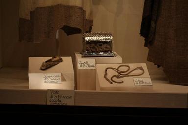 Keywords: ChiaraAssisRel.JPG en St Claire of Assisi relics at Assisi Basilica di Santa Chiara her hairs a sandal etc Own Bocachete 2006-06 Clare of Assisi Tomb of Clare of Assisi Relics in Italy
