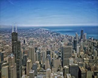 Keywords: chicago illinois city cities aerial view skyscrapers downtown cityscape urban skyline architecture sky clouds hdr destinations lake water buildings