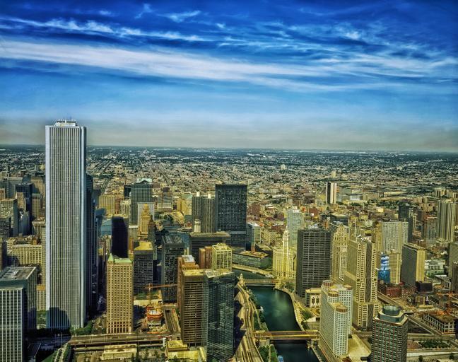 Keywords: chicago illinois city cities aerial view skyscrapers downtown cityscape urban skyline architecture sky clouds hdr destinations buildings