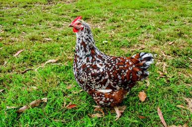Keywords: chicken fowl hen farm bird poultry farming animal agriculture rural rooster beak chick domestic livestock meat food feather brown female poultry farming meadow chicken farm grass green outdoors organic