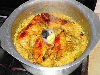 | Keywords: Chicken Mandi Rice during Cooking.JPG en مندي الدجاج أثناء الطهي own Miansari66 Cuisine of Karachi Curry dishes in Pakistan Cuisine of Yemen Cuisine of the United Arab Emirates Mandi food Cuisine of Saudi Arabia Cuisine of Syria Cuisine of Egypt Arabic chicken dishes Cc-zero |