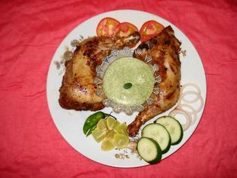 Keywords: Chicken Tikka with Mint Raita and Salad.JPG en Murgh Tikka own Miansari66 Cc-zero Cuisine of Punjab India made by User Miansari66 Meals in Pakistan Chicken dishes of Pakistan Mint sauces