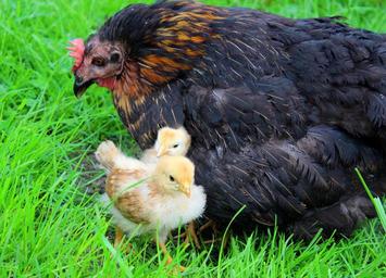 Keywords: chicks yellow mother hen hen shelter hide protect cute spring sweet fluffy curious chicken plumage poultry creature animals meadow out