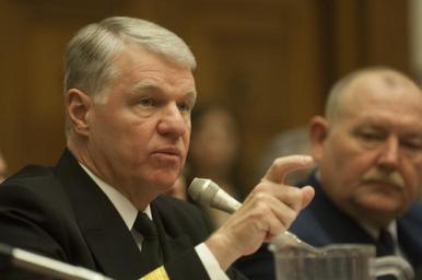 | Keywords: Chief of Naval Operations 071213-N-FI224-179.jpg en Commandant of the Marine Corps Gen James T Conway Chief of Naval Operations CNO Adm Gary Roughead and Commandant of the Coast Guard Adm Thad W Allen appear before the House Armed Services Committee to give testimony and answer questions concerning the unified maritime strategy The strategy The Cooperative Maritime Strategy for 21st Century Seapower seeks to use the assets of all three of the nations maritime services to achieve a balance of peacetime engagement and major combat operation capabilities to include forward presence deterrence sea control power projection maritime security and human assistance and disaster response U S Navy photo by Mass Communication Specialist 1st Class Tiffini M Jones Released <br>Unit Defense Imagery Management Operations Center 2007-12-13 Tiffini Vanderwyst Jones https //www dvidshub net/image/824691/chief-naval-operations 071213-N-FI224-179 2013-02-01 06 40 ARLINGTON VA US PD-USGov-Military-Navy Photographs by Defense Video and Imagery Distribution System Gary Roughead in 2007 James T Conway in 2007 Images from DoD uploaded by Fæ |