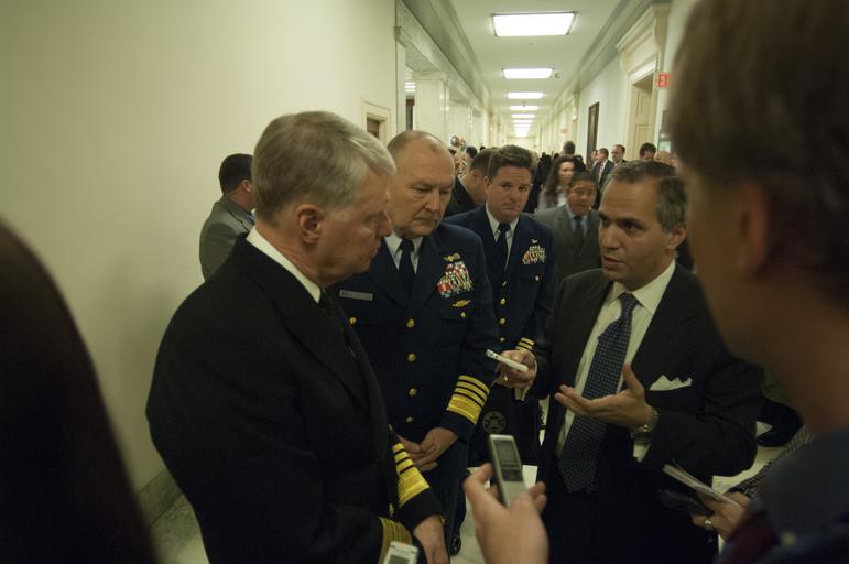 Keywords: Chief of Naval Operations 071213-N-FI224-209.jpg en Commandant of the Marine Corps Gen James T Conway Chief of Naval Operations CNO Adm Gary Roughead and Commandant of the Coast Guard Adm Thad W Allen appear before the House Armed Services Committee to give testimony and answer questions concerning the unified maritime strategy The strategy The Cooperative Maritime Strategy for 21st Century Seapower seeks to use the assets of all three of the nations maritime services to achieve a balance of peacetime engagement and major combat operation capabilities to include forward presence deterrence sea control power projection maritime security and human assistance and disaster response U S Navy photo by Mass Communication Specialist 1st Class Tiffini M Jones Released <br>Unit Defense Imagery Management Operations Center 2007-12-13 Tiffini Vanderwyst Jones https //www dvidshub net/image/824697/chief-naval-operations 071213-N-FI224-209 2013-02-01 06 40 ARLINGTON VA US PD-USGov-Military-Navy Photographs by Defense Video and Imagery Distribution System Gary Roughead in 2007 James T Conway in 2007 Images from DoD uploaded by Fæ