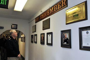 | Keywords: Chief of Naval Operations visits Navy Region Northwest 090218-N-FI224-096.jpg en Chief of Naval Operations CNO Adm Gary Roughead looks at the wall of remembrance honoring those lives lost in support of the global war on terrorism at Explosive Ordnance Unit 11 Roughead was in Navy Region Northwest visiting various naval facilities to get a first-hand look at the work being done by sailors and Navy civilians in the region U S Navy photo by Mass Communication Specialist 1st Class Tiffini M Jones 2009-02-18 Tiffini Vanderwyst Jones https //www dvidshub net/image/675105 090218-N-FI224-096 2012-10-02 16 02 OAK HARBOR WA US PD-USGov-Military-Navy Gary Roughead Images from DoD uploaded by Fæ |