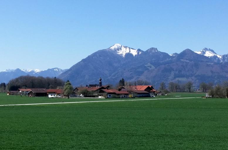 Keywords: chiemgau chiemgau alps overseas overseas at the chiemsee blue sky green meadows village snow bavaria