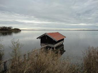 Keywords: chiemsee water boat house jetty rest mood bavaria upper bavaria