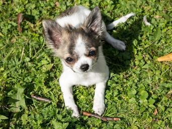 Keywords: chihuahua dog puppy baby play young cute small small dog young dog meadow rush grass