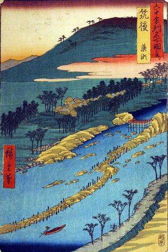| Keywords: Chikugo Province, The Currents Around the Weir (5765346825).jpg en <b>Accession Number </b> 1957 285 <b>Display Artist </b> Utagawa Hiroshige <b>Display Title </b> Chikugo Province The Currents Around the Weir <b>Translation s </b> Chikugo Yanase <b>Series Title </b> Famous Views of the Sixty-odd Provinces <b>Suite Name </b> Rokujuyoshu meisho zue <b>Creation Date </b> 1855 <b>Medium </b> Woodblock <b>Height </b> 13 1/2 in <b>Width </b> 9 in <b>Display Dimensions </b> 13 1/2 in x 9 in 34 29 cm x 22 86 cm <b>Publisher </b> Koshimuraya Heisuke <b>Credit Line </b> Bequest of Mrs Cora Timken Burnett <b>Label Copy </b> One of Series Rokuju ye Shin Meisho dzu Views of 60 or More Provinces Published by Koshei kei in 1853-1856 Included in this collection are 3 duplicates The Chikugo River is the largest on the island of Ky sh The raised platform by the low dam was used to store the hoop nets used to catch the trout-like fish for which this region is known <b>Collection </b> http //www sdmart org/art/our-collection/asian-art The San Diego Museum of Art 2007-12-20 13 41 22 https //www flickr com/photos/thesandiegomuseumofartcollection/5765346825/ Flickr en thesandiegomuseumofartcollection PD-old-100 Art of Japan in the San Diego Museum of Art |