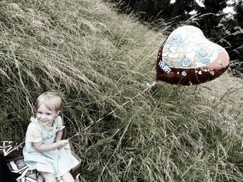 Keywords: child balloon heart smile joy sweet helium joy of life girl play happy