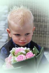 Keywords: child bouquet wedding son blond infant