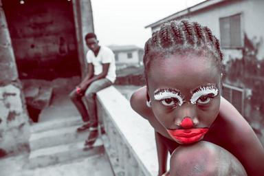 Keywords: child clown bored make up
