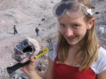 Keywords: child explore rocks adventure girl power girl play hammer archeology
