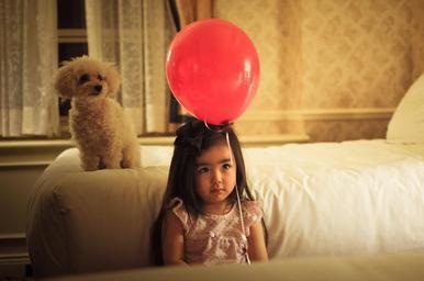 Keywords: child girl balloon dog puppy female portrait childhood cute kid little