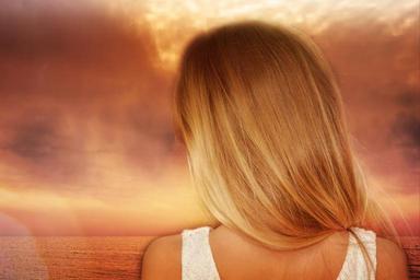 Keywords: child girl blond long hair outlook sea sunset lighting