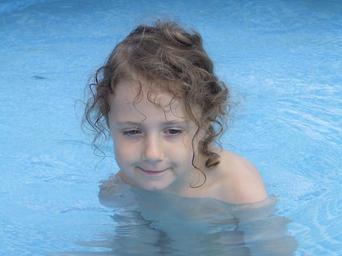 Keywords: child girl curls swim water summer swimming pool face view