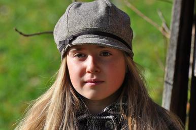 Keywords: child girl face long hair blond cap