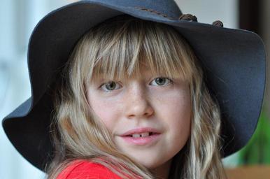 Keywords: child girl face smile happy human blond hat cute eyes
