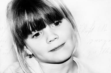 Keywords: child girl face view dreamy black and white recording painting digital painting