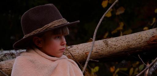 Keywords: child girl forest hat cold coat freeze alone thoughtful evening