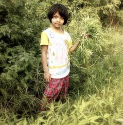 Keywords: child girl happy cute kid female young smile grass holding myanmar burmese