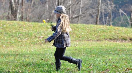 Keywords: child girl long hair blond run meadow