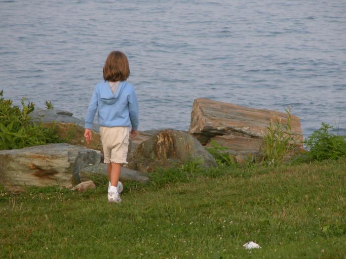 Keywords: child girl ocean walking summer kid water grass childhood outdoor happy