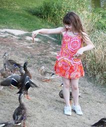 Keywords: child girl park play kid happy duck outdoors outside playing feeding wildlife