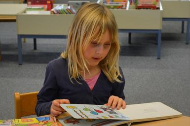 Keywords: child girl people library books read