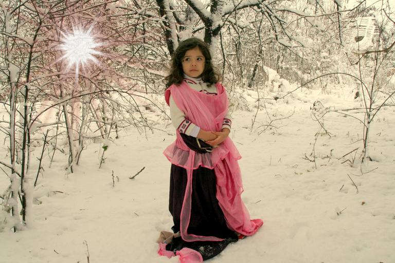 Keywords: child girl princess snow dress story white