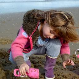 Keywords: child girl sea beach pink play