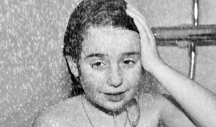 Keywords: child girl shower water drop of water wet face