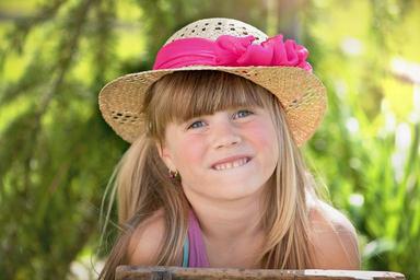 Keywords: child girl summer hat out nature face blond sweet portrait close person human