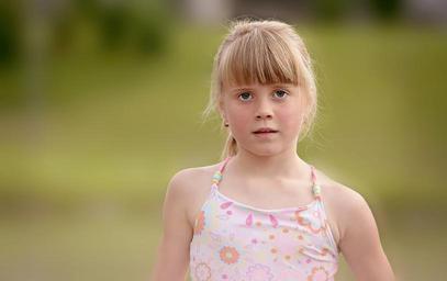 Keywords: child girl swim face blond view out nature portrait close