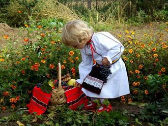 Keywords: child girl tradition peasant woman cos fruit flowers supplies
