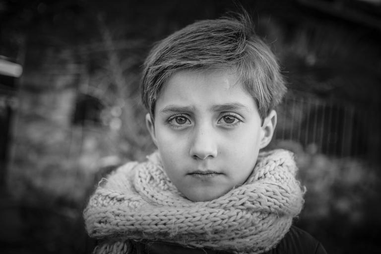 Keywords: child look winter field young scarf smiling happy pose reflective look face portrait posing posture pretty to watch